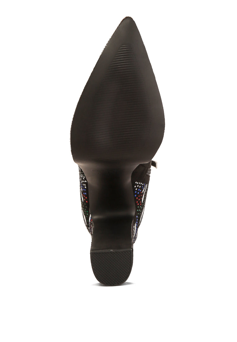 Only fun and glamour in these high heeled boots with gorgeous rhinestones and mirror embellishments. The boots are stunning with the patterned embellishments and would look beautiful paired with a biker chic outfit for a night out!
